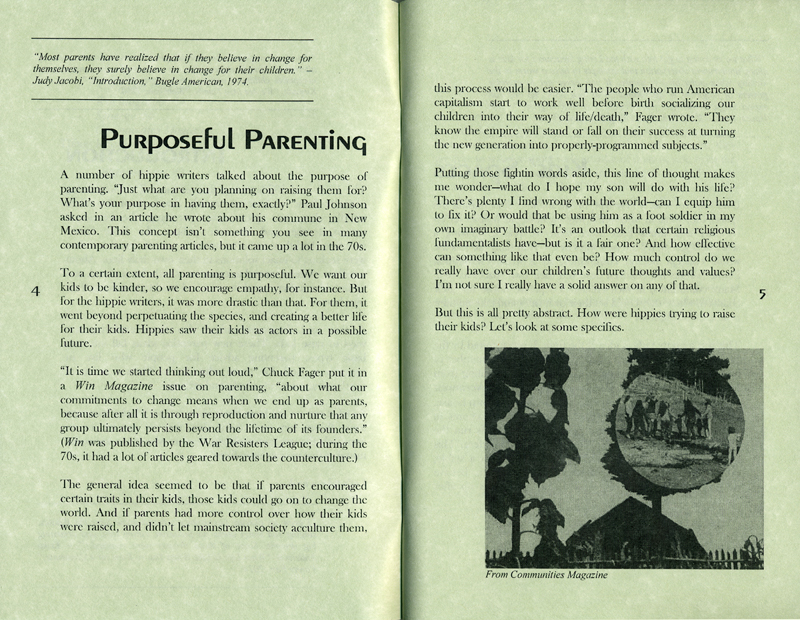 Tim looks at parenting ideas found in 1970s hippie publications -- and compares them with what grown-up hippie writers have to say about their youth. Topics include alternative schools, food, and gender roles, among many others.