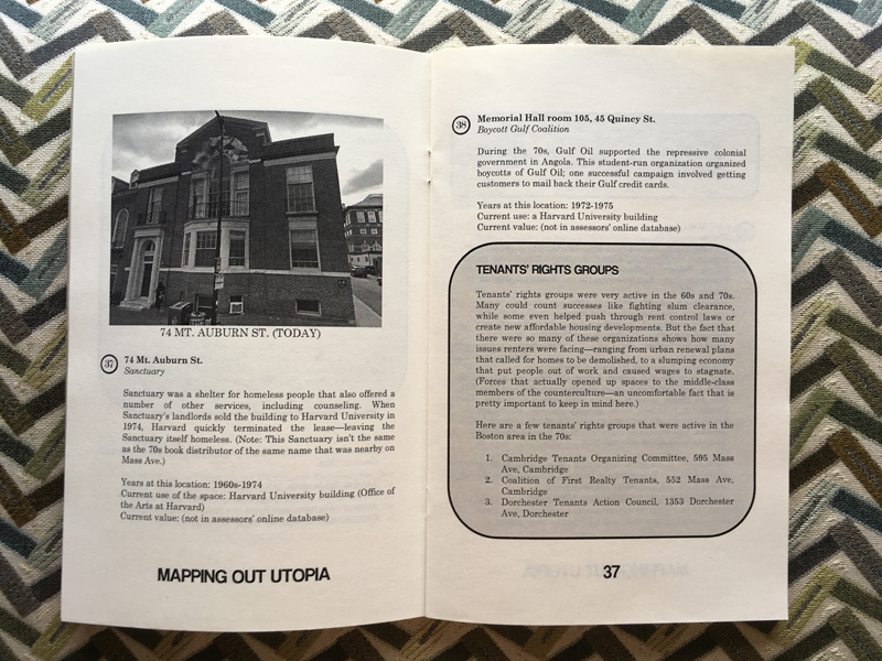 Each volume of MAPPING OUT UTOPIA maps out a different part of the city. This one takes on the epicenter of Massachusetts countercultural life in the 60s and 70s: CAMBRIDGE.