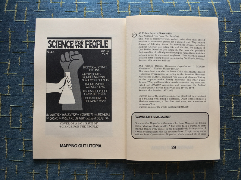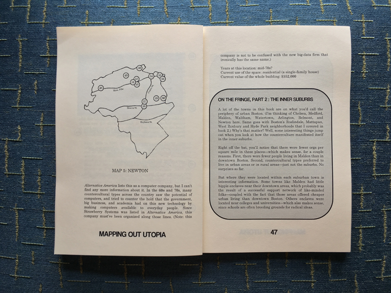 MAPPING OUT UTOPIA is a three-part look at the Boston area's 1970s counterculture, based on listings found in old countercultural directories and magazines.